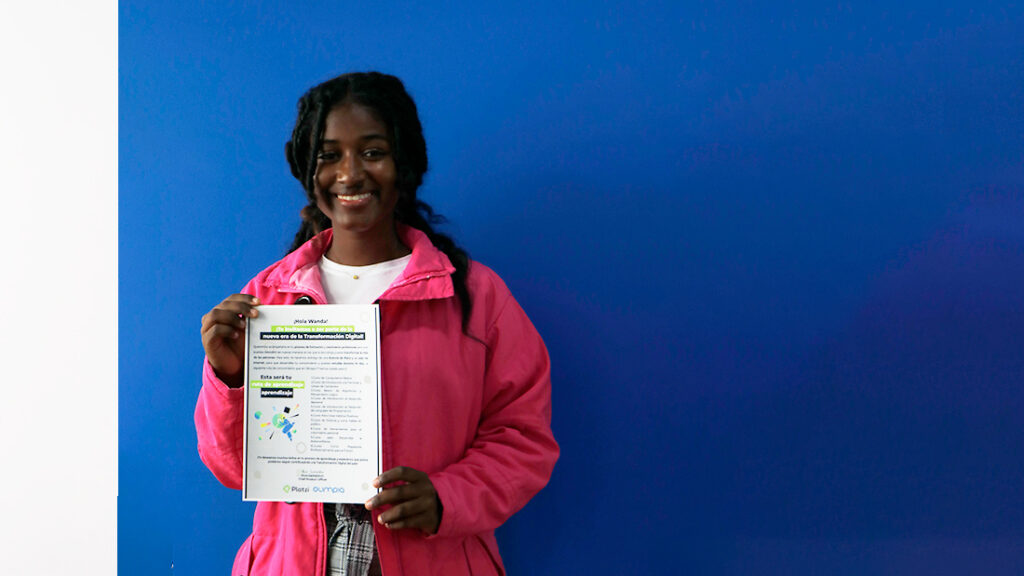 Además, construimos para Wanda una ruta de aprendizaje con uno de nuestros aliados: Platzi, para que se acerque educativamente al sector de tecnología y pueda ser una vocera para su comunidad.